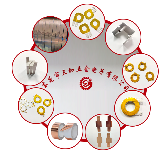東莞市三加五金電子有限公司?公司主營產(chǎn)品:銅箔.銅帶.自粘銅.鋁帶。并從事設(shè)計:定制.加工.五金沖壓成型,再層間貼膠絕緣,折彎等五金配件。達(dá)到客戶購回直接組裝做一些大功率.大瓦特數(shù)的變壓器用銅圈,客戶能省時...